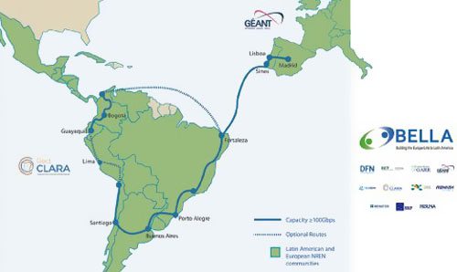 BELLA聯盟包含來自巴西、智利、哥倫比亞、厄瓜多爾、法國、德國、意大利、葡萄牙和西班牙的11個歐洲和拉丁美洲研討和教育網絡,以及區(qū)域網絡RedCLARA,拉丁美洲研討和教育網絡、泛歐研討和教育網絡GÉANT。